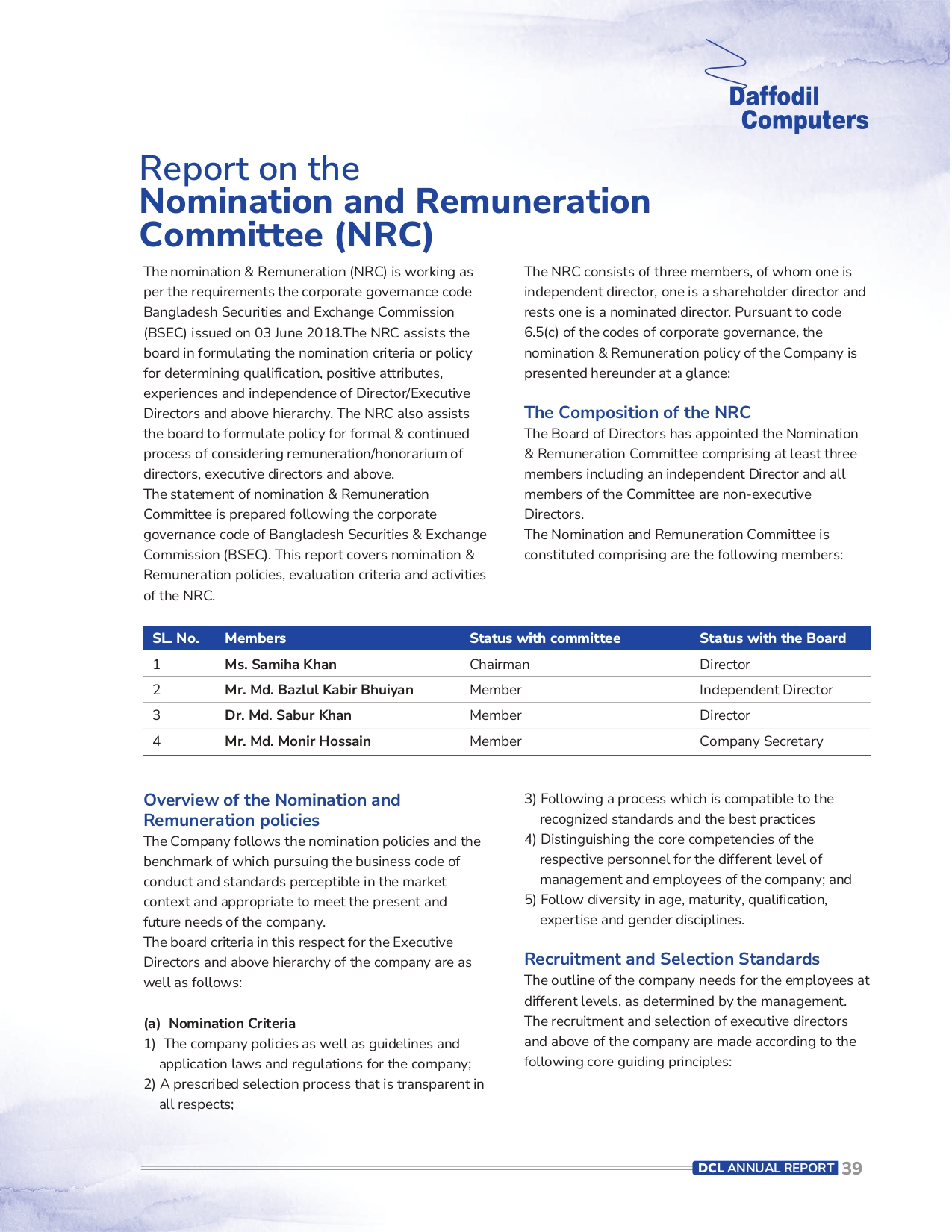 Corporate Governance Compliance Status