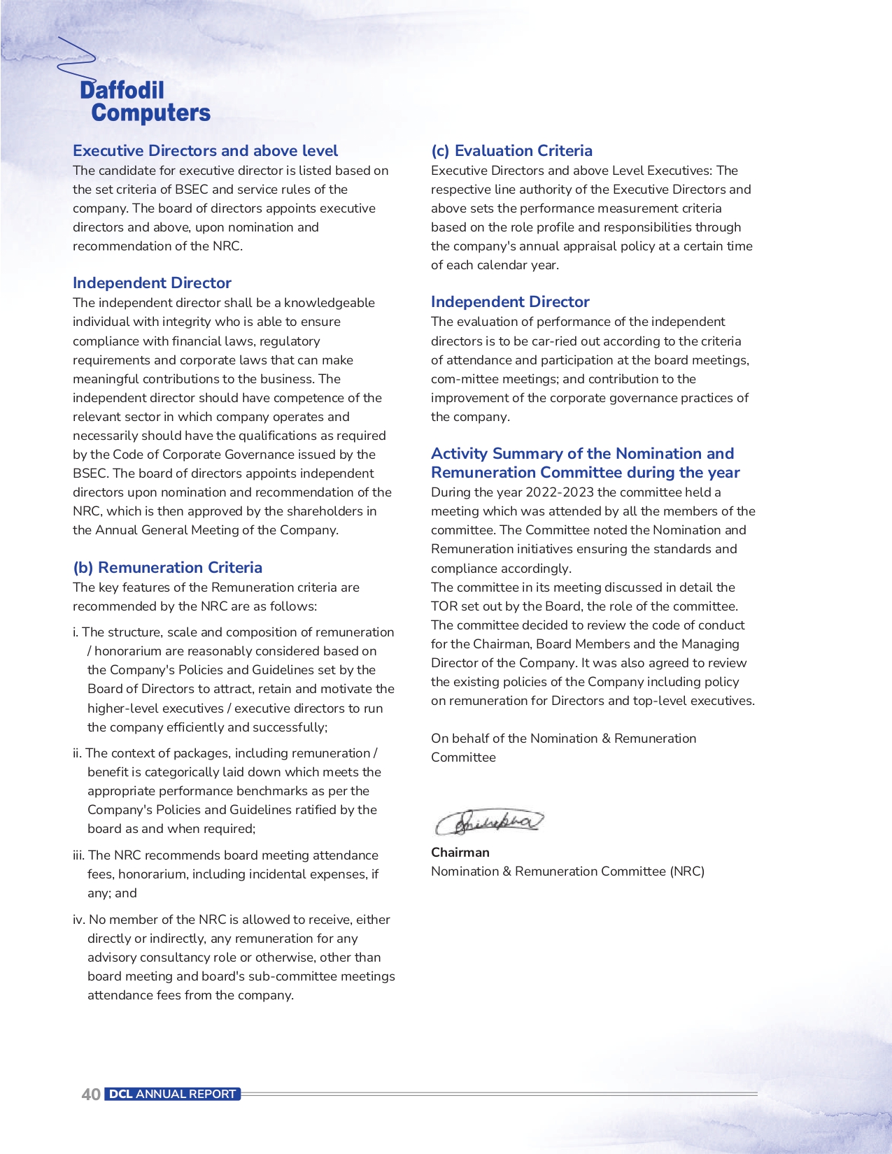 Code of Conduct Chairman Managing Director Report